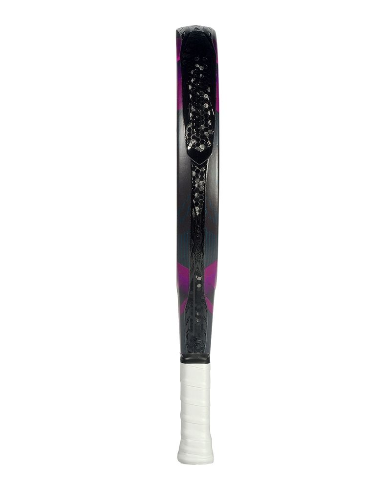 Grazie al punto dolce allargato e alla gomma EV25 Black Soft, gli impatti sono omogenei, con un’uscita di palla pulita e stabile sia dal fondo che dalla rete. La laminazione uniforme e la Rubber Force aumentano il comfort e riducono le vibrazioni, ottenendo prestazioni avanzate senza rinunciare alla morbidezza ad ogni colpo.