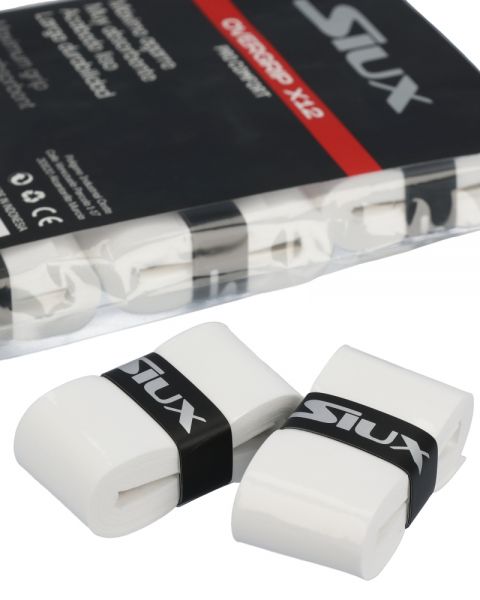 Confezione da 12 unità di overgrip Siux Pro Comfort lisci di colore bianco.