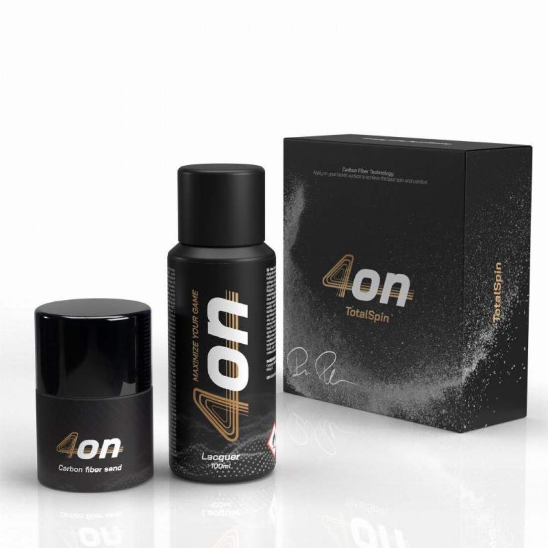 TotalSpin 4ON è composto da una lacca da 100 ml e da una sabbia in fibra di carbonio.